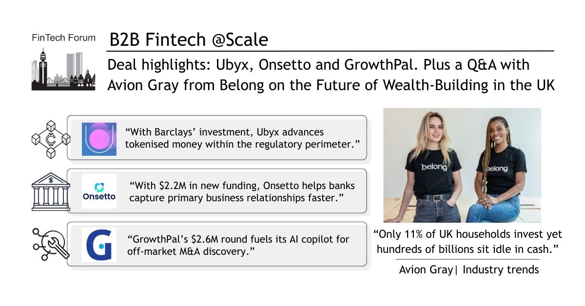 Deal highlights: Ubyx, Onsetto and GrowthPal. Plus a Q&A with Avion Gray from Belong on the Future of Wealth-Building in the UK